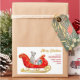 En estos pegatinas decorativos de vacaciones bonitos, un perro dálmata se sienta en un trineo decorativo bonito rojo y dorado. Al lado del perro se sientan sus paquetes de regalo atados con arcos de colores. El texto de la escritura dorada a la derecha dice "FELIZ NAVIDAD" y el texto de tu personalizado está en rojo. Perfecto para la correspondencia de sus Navidades o paquetes de regalo! Hay muchas otras imágenes y productos de raza en Dog Village.
