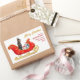 En estos pegatinas decorativos de vacaciones, un perro Doberman Pinscher se sienta en un trineo decorativo de bonito rojo y oro. Al lado del perro se sientan sus paquetes de regalo atados con arcos de colores. El texto de la escritura dorada a la derecha dice "FELIZ NAVIDAD" y el texto de tu personalizado está en rojo. Perfecto para la correspondencia de sus Navidades o paquetes de regalo! Hay muchas otras imágenes y productos de raza en Dog Village.