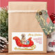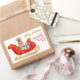 En estos pegatinas decorativos de vacaciones bonitos, un perro de Golden Retriever se sienta en un trineo decorativo de bonito rojo y oro. Al lado del perro se sientan sus paquetes de regalo atados con arcos de colores. El texto de la escritura dorada a la derecha dice "FELIZ NAVIDAD" y el texto de tu personalizado está en rojo. Perfecto para la correspondencia de sus Navidades o paquetes de regalo! Más imágenes de perros recuperadores, así como otras razas, en Dog Village.