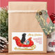 En estos bonitos pegatinas decorativos de vacaciones, un perro Labrador Recuperever negro se sienta en un trineo decorativo de bonito rojo y oro. Al lado del perro se sientan sus paquetes de regalo atados con arcos de colores. El texto de la escritura dorada a la derecha dice "FELIZ NAVIDAD" y el texto de tu personalizado está en rojo. Perfecto para la correspondencia de sus Navidades o paquetes de regalo! Más imágenes de perros recuperadores, así como otras razas, en Dog Village.