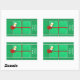 Pegatinas de vacaciones con temática de tenis con pista de tenis envueltos como un regalo, y las palabras: Tener un voleibol alegre. Editar texto al personalizar para favores de partido de tenis o regalos de vacaciones.