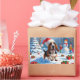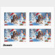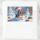 Pegatina Rectangular Navidades del Hound Basset Festive Escena de Nieve