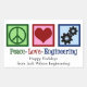 Un ingeniero genial pegatina de vacaciones con un signo de paz, corazón y engranajes. Pegatinas de Navidad de personalizable lindo para una compañía de ingeniería. Ingeniería de amor por la paz.