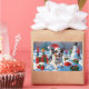 Pegatina Rectangular Navidades Terrier Australianos celebran escena de