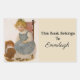 Pegatina de nombre de placa de biblioteca de época con la foto de una niña mecedora de su muñeca.