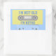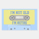 Pegatinas con el lema "No soy viejo, soy retro" en cinta azul y verde.