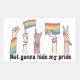 Los brazos levantados en el aire envueltos o ondeando banderas de arco iris con un groovy retro texto negro debajo de lo que orgullosamente proclama, no van a esconder mi orgullo. Un único y colorido mensaje gráfico y poderoso de texto para las celebraciones del Mes del Orgullo y más allá.