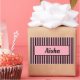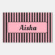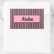 Pegatina Rectangular Nombra de rayas negras rosadas para bebé