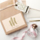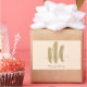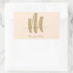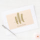 Pegatina Rectangular nombre comercial inicial beige de monograma dorado