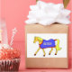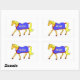 Personalizado pegatina. El nombre se puede personalizar o cambiar a un texto de su elección. Poni de palomino con mané amarillo y cola llevando una alfombra estable azul tradicional con un borde rojo.