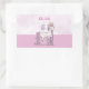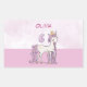 Pegatina Rectangular Nombre personalizado 6º cumpleaños caballo rosa co