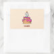 Pegatina Rectangular Noveno cumpleaños, chica, nueve en pastelería rosa