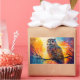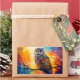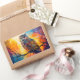 Oleada de bosque sobre el fondo de una puesta de sol en tonos multicolores. Vigilantes forestales. La idea original de la decoración casera.