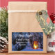 Los inspiradores stickers de Navidad personalizados representan un árbol de pino cubierto de una manta de nieve iluminada por una linterna brillante. Cuenta con los queridos Navidades Carol, O Holy Night. Se puede personalizar el verso del villancico del frente.