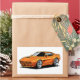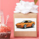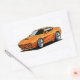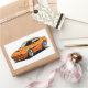 An exotic cartoon sport hybrid with vivid orange tones, graphic highlights, and monumental chrome wheels. A bold experimental car design for fans of stylized automotive art.