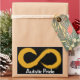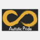 Texto del Orgullo autista con el logotipo del infinito de oro de aceptación autista.