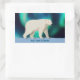 Pegatina Rectangular Oso Polar Cutáneo y Luces del Norte