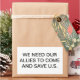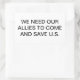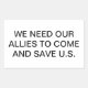 WE NEED OUR ALLIES TO COME AND SAVE U.S.. Conscious-Social-Commentary Splash-art sticker-design by Jeff Hankamer at Artjunkhaus