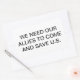 Pegatina Rectangular OUR ALLIES MUST SAVE U.S.. Hankamer Artjunkhaus