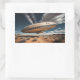 Pegatina Rectangular OVNI sobrevolando el desierto