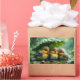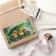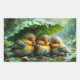 Pegatina Rectangular Pájaros esponjosos lindos en la lluvia