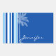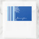 Pegatina Rectangular Palm tropical; franjas azul y blanca
