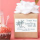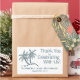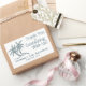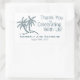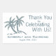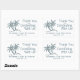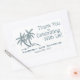 Este sencillo pero elegante pegatina de agradecimiento nupcial presenta dos palmeras azules con los nombres de la novia y Groom y la fecha boda debajo. Junto a los árboles están las palabras "gracias por celebrar con nosotros". Esto podría usarse para favores de boda y/o etiquetas de regalo de agradecimiento. Ideal para bodas tropicales, costeras, oceánicas o de playa.