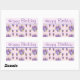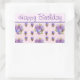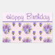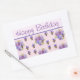Pegatina Rectangular Pansy Flower Pink Stripe floral Feliz cumpleaños