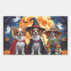 Pegatina Rectangular Papillon Dogs Calabaza Halloween Gracioso