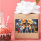 Escena divertida de Halloween con un pequeño y travieso cachorro mirando desde una calabaza tallada, rodeada de vibraciones de otoño espeluznantes y divertidas. Con un encanto descarado y colores otoñales, es el toque de humor perfecto para la temporada.