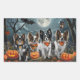 Descanse el espíritu espeluznante con este inquietante diseño de Halloween que presenta una manada de perros bajo un cielo oscuro, iluminado por la luna, rodeados de bates voladores y calabazas brillantes. Perfecto para los amantes de la diversión con sus peludos amigos.