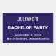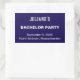 Pegatina rectangular de despedida de soltero en azul oscuro y texto plano, un color para novios o anfitriones que asocian el azul con la confianza y la lealtad. Un diseño para novios o anfitriones que también prefieren texto plano sin elementos de fondo para mejorar la legibilidad. El texto blanco que contrasta sobre el fondo azul oscuro sólido y el uso de fuentes sans serif también mejoran la legibilidad y la claridad. Personalízalo escribiendo el nombre del festejado, la fecha y el lugar de la fiesta. Por favor, comprueba la apariencia después de escribir los textos. Si la apariencia es de su agrado, puede realizar su pedido ahora. Si necesita cambiar el tamaño y reposicionar los textos para que quepan en esta pegatina, por favor ajuste en la herramienta de diseño. También puede cambiar el estilo de fuente, el color de fuente y el color de fondo en la herramienta de diseño. Al novio, celebre su última noche de libertad. Disfruta de tu última noche de soltero. Le deseo todo lo mejor para su próxima boda y que su matrimonio esté
