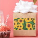 Pintura de un parche de girasoles amarillos brillantes con hojas verdes, impreso en pegatinas. Se puede personalizar.