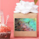 Las burbujas pasteles de agua, turquesa, azul, rosa y morada son el telón de fondo para estas plumas de pavo real espesas