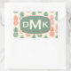 Pegatina Rectangular Patrón de piña de época | Monograma