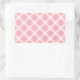 Pegatina Rectangular Patrón De Tartán Rosa Y Blanco
