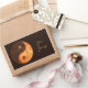 El símbolo tradicional de yin y yang está adornado con flores y remolinos en ricos tonos marrón y oro. El símbolo se puede ampliar para rellenar el producto o reducir su tamaño a un círculo más pequeño dependiendo del aspecto que desee crear; para esta opción se incluye un fondo con motivos marrones oscuros. Busque 'Yin Yang con patrones' para ver otras combinaciones de colores.