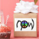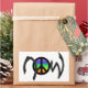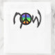 Una reproducción del logo de una popular línea de ropa cristiana, este gráfico insta "PAZ AHORA" con el color de un arcoiris.