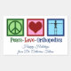 Paz Amor Navidades Ortopedia regalan pegatinas. Un lindo pegatina personalizado para un cirujano ortopédico u ortopedista que trabaja con el sistema musculoesquelético y pacientes que necesitan cirugía de hombro y cadera. Una señal de paz, corazón y un esqueleto.