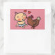 Pegatina Rectangular Peck lindo del pollo de Brown en la mejilla para