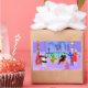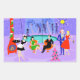 ¡Estos Pegatinas Fiestas de Navidades trópicos retro son lo suficientemente festivos como para alegrar el panorama vacacional! El diseño personalizado presenta el tipo de fiesta vacacional extremadamente sofisticada que normalmente sólo se ve en películas de Navidades de los años 60. Hay una sala de estar moderna de mediados de siglo llena de fiesteros que disfrutan de una decoración marcadamente violeta. Una mujer encantadora con el uniforme de criada francesa lleva una bandeja de martinis. Ella está parada al lado de una chimenea roja de conos con un fuego abrasador. Hay tres medias verdes colgadas por la chimenea moda con cuidado. En el centro de la sala, una pareja atractiva está sentada en sillas de huevo naranja. La mujer lleva un vestido verde y festivo. El hombre lleva puesto un traje negro con corbata roja. Cada uno lleva un martini. Otra pareja se está volviendo acogedora bajo una araña colgante, amarilla y sputnik. El distinguido caballero de pelo gris lleva puesto un traje azul, camisa azul clara y corbata roja. También está usando un sombrero de Papá Noel y sosteniendo un martini en cada mano, mostrando al mundo que sus días de fiesta están lejos de terminar. Su compañero es una rubia con un vestido rojo impresionante. El Sr. Distinguished debería tener cuidado porque ella está sosteniendo un sorbo de mistletoe en su mano. Delante de la sala hay un árbol de Navidad kitsch, rosa, con adornos verde azulados y una estrella amarilla. Detrás de esta escena, podemos ver a través de las paredes de vidrio del suelo al techo. El escenario al aire libre cuenta con una piscina redonda de color turquesa. Podemos ver la silueta morada de una mujer sumergiendo sus piernas en el agua. Entre las paredes de piedra morada, hay siluetas de palmeras decoradas con adornos y lámparas de Navidad. También se ven las siluetas de los bailarines y de los fiesteros parlantes. Si hay algo que esto prueba, es que, mientras la gente que vive en casas de vidrio no debería arrojar piedras, ¡definitivamente deberían arrojar fiestas!