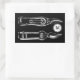 Ilustracion vintage de podadoras. Un regalo perfecto para los jardineros. Personalizable pegatinas rectangulares con Monograma en un círculo blanco. Puede cambiar fácilmente el texto (fuente, tamaño, color y posición) y el color de fondo (aquí negro) haciendo clic en el botón personalizar o personalizar.