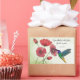 Un colibrí se alimenta de una flor cosmos roja. Esta imagen acuarela ofrece alegría y paz mientras le haces saber a alguien que estás pensando en ellos y agradeciendo a Dios por ellos.