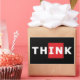 Piensen fuera de la caja. Diseño de texto simple con la palabra PIENSA con las letras IN dentro de un cuadrado rojo que representa el CUADRO. Para librepensadores.