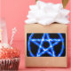 Ardiendo con una llama etérea espiritual azul, este pentáculo es bastante sorprendente en su visibilidad. Se distingue claramente por el fondo negro circular que hay detrás. Sencillo pero eficaz.