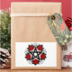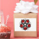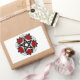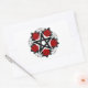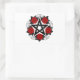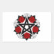 Pentagrama negro con estampado, decorado con rosas rojas florecientes con hojas sobre fondo blanco. Estilo tatuaje.