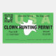 Permiso de caza de payasos - Decal verde de 4,5" x 2,7" de cáscara brillante pegatina y palo 1 hoja de 4 pegatinas