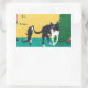 Pegatina Rectangular Perro Gato Divertido Jugando Árbol De Navidad A Pe