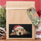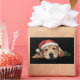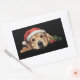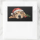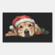 Pegatina Rectangular Perro Retriever Dorado Navidad Sombrero Santa Perr