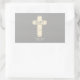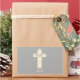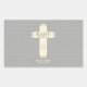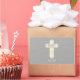 Esta cruz crema se distingue por el fondo gris plateado. El diseño de puntos en la cruz y en el fondo crea un aspecto de bebé de bonito suizo. Este regalo, recuerdo, obsequio o fiesta es esencial para felicitar a los padres por la sagrada dedicación de su bebé.